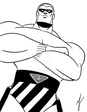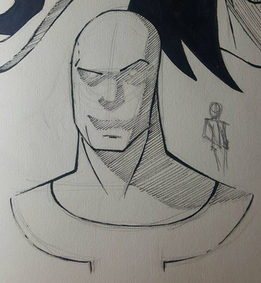 Phantom Limb from Venture Brothers. There are like three stories as to this guy's origin. He and the Monarch are not on good terms, as they share a common love interest... Dr. Girlfriend. She partnered with Phantom Limb first. This is from a sketch by Tom Hodges. I redrew then inked it. This is under the Jonas Venture drawing in my sketch book. While I was doing some stuff to the Jonas drawing I forgot to put something between them. Some ink soaked through the page. I corrected it as best I could with a paint pen. I may color this one to further hide the mistake.original artist... [link]