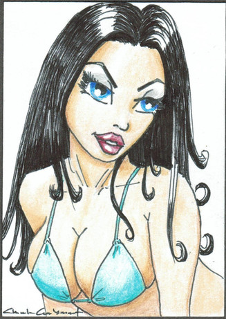 This makes me think of Rocka Billy girls. The actual drawing is not that dark. Just came out weird.The original was by Josh Howard. I redrew it and inked it. Used prismacolors to shade it. Getting low on the greys.
