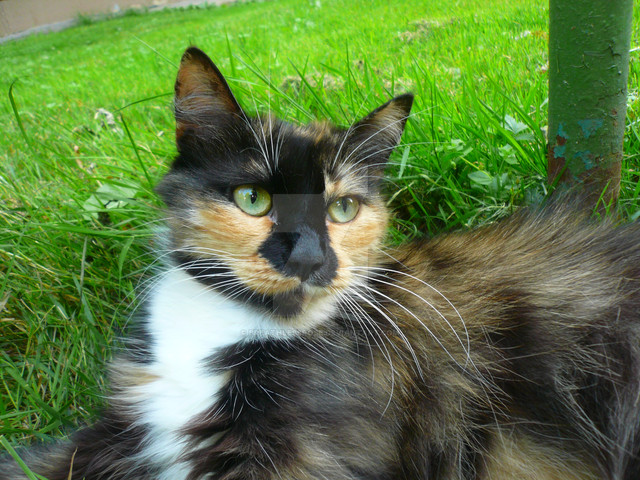 So fluffy and I like how that cat's coat is mainly in greyscale but has those few colourful regions of pink, brown and green shades.