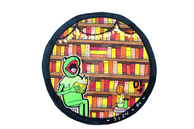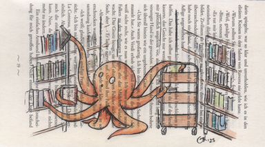 Here is an underwater library! Do you think the books are waterlogged? I drew the octopus and his library and then did a blue watercolor wash to make it look like this scene is underwater.QOTD: If you could collect something, what would it be?