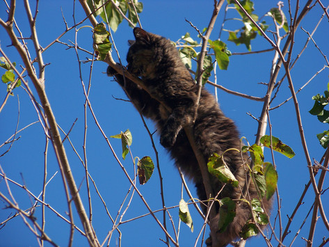I was so mad at him when he did thisI took Kitty-kitty for a walk to take some photos for my dad's birthday. When I am with him, Kitty-kitty zooms up and down the trails like a mad cat and then lunges really high up in the trees.... and then I have to climb up and get him down every time. As you can see in this moment, once he realizes he is stuck, he looks at me and screams
