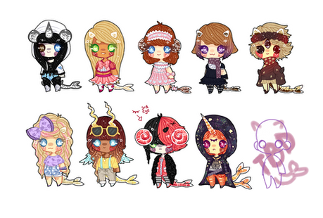 I kinda loved this little chibi style I had started to use, and suddenly I had a list of 50 characters to draw and got going! I believe Candy2021 did something like this before, so I hope she doesn't mind my own take on it aha. I had alot of fun with this project and I hope you guys like it! Im so sorry if I didn't do one of your characters, I'm one person and I drew the line after 50, but I may do another one of these sometime! <3