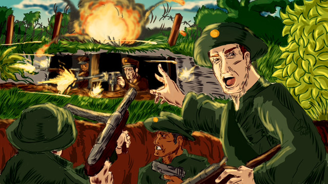 In terms of technique, I tried my professor's suggestion on using Gaussian blur in my linework. I used that to soften the lines and then a combination of that and motion blurring on the background to bring the two soldiers into focus. The explosion was a lot of fun to do. Never did one before, so I looked at a combination of explosions from WW2, real-life, and comics/manga. Not gonna lie, when I finally applied the lighting to the explosion, I was giddy with excitement.