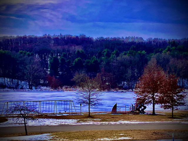#adventure #clouds #cold #enviroment #evergreen #forest #homes #horizon #house #ice #lake #landscape #maze #outdoors #paths #roads #rural #shore #sky #snow #trees #water #winter