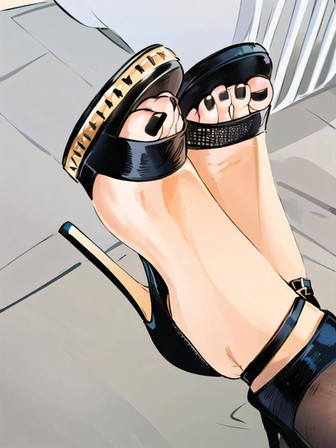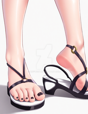 An extremely talented work. Just love how the black color of sandals and nails emphasize foot and toenails shapes. So please, do more - there aren't enough well-drawn foot close-ups around. Β