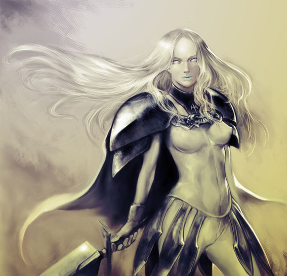 silver hair + blue eyes combo, girl in armor, pretty face, and glorious assets...