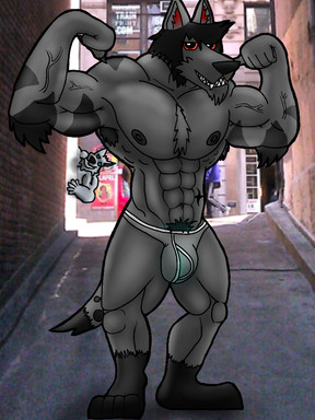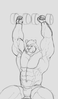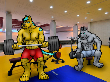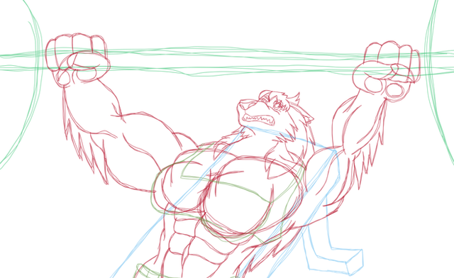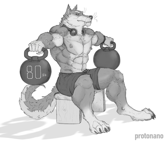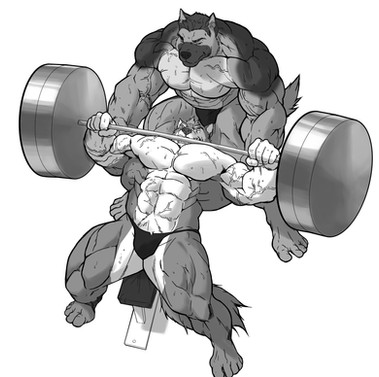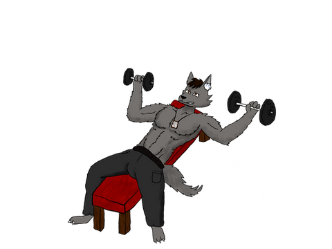 how do these wolves get in that incredible shape?... workout. they don't use "weird" tricks to gain muscle, they may however use some wolf steroids. XDsketchy again, no background because the lineart became solid at some point (the layer wasn't transparent anymore) so I had to improvise some "colouring" with shading. the light source should be over it's head.