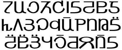 This in a font for the Gothic language that I just threw together yesterday. I found this [link] Gothic font made by kohath [link] , which is nice, but I wanted something with a little more variation in stroke thickness, or whatever it was that made that font seem odd. I tried once before, starting with Roman capitals, but extended the ascenders beyond the em square, producing something that wouldn't have the right proportions if I scaled it down to the right size. So I decided to use lower-case proportions. To that end, I based this font on Century, especially on the lower-case Cyrillic. I did borrow some of the shapes, and even entire letters (this is legal in the US), but I think I put enough work into it to make it truly original.By the way, this font has basically the same mapping as the one linked above. Text should work just as well in either. Sorry I can't do Unicode. FontLab only does Plane 0. This font also does not have Roman. I suggest Century or Century Schoolbook (same style) if you need to mix scripts.
