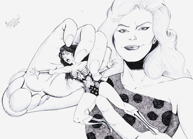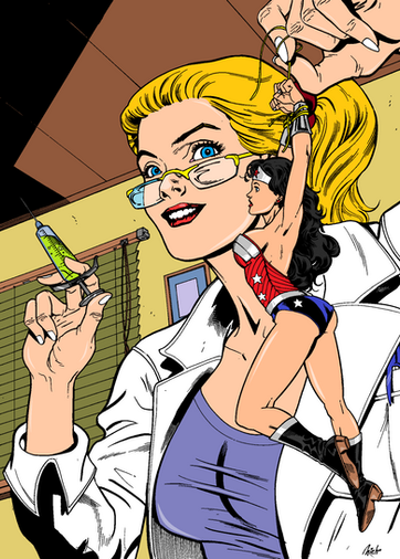 The once again caught by surprise the powerful Wonderwoman has been shrunk by a beautiful evil scientist. The lovely Lynda Carter as Wonder Woman struggles in the powerful grip of a beautiful giantess but is unable to break free. This is part 1 of a second picture done by a wonderful artist here at deviantARTEviltrevor.