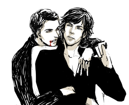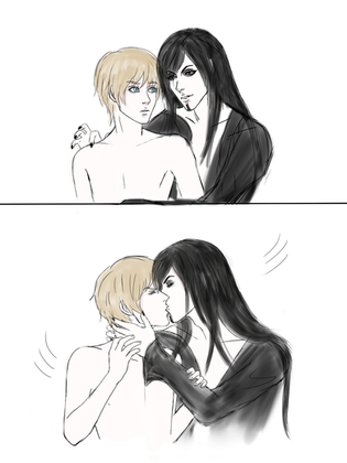 Well, sort of. I didn't actually use a style meme but sort of made up my own. I just wanted to try out going from realistic to mochi, so I used my two favorite Hetalia characters. I think anime Denny is adorable. x3Stupid scanner doesn't pick up colors. D: