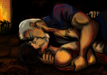 *happy* Yay for sexy Slade straddling seduced Robin! ...That was a lot of 's' words. But yeah, this picture is so good! I love how you didn't really draw Slade but everyone knows it's him before evn reading your commentary. Robin's expression makes me think that he wants to close that little space between Slade's mouth and his own. And this is a sketch? Damn, I wish my finished pieces were half as good as this sketch.