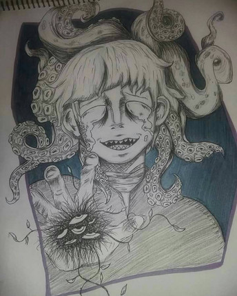 #coloredpencils #cthulhulovecraft #drawingillustration #ink #male #monster #originalcharacter #requestdrawing #shadow #sketch #tentacles