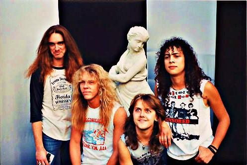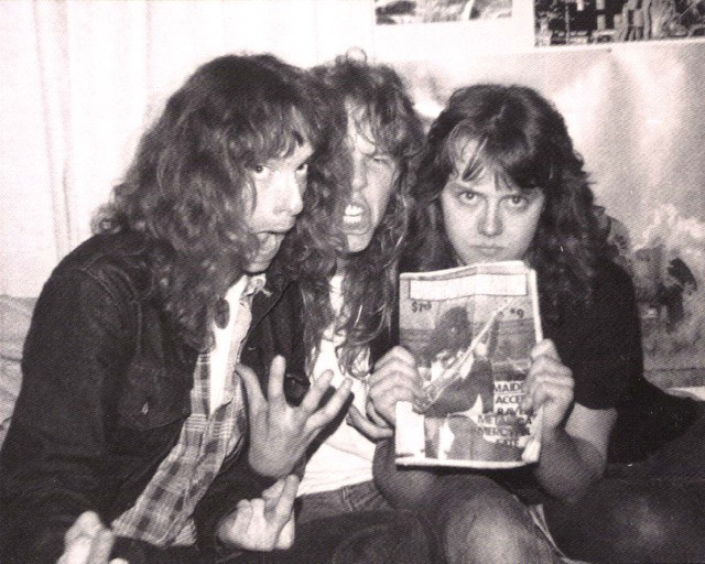 Metallica before the start of Metalmania '87 music festival in Katowice, Poland, on 10 February 1987.Note: Picture taken while Poland was still a Communist country.