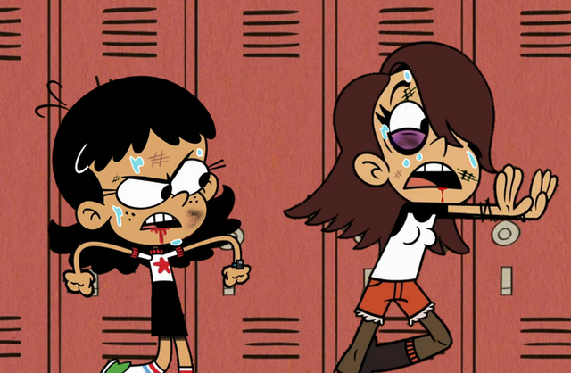 luan: okay okay i just got back from a comendy show ( tries to put her hands up)