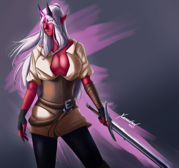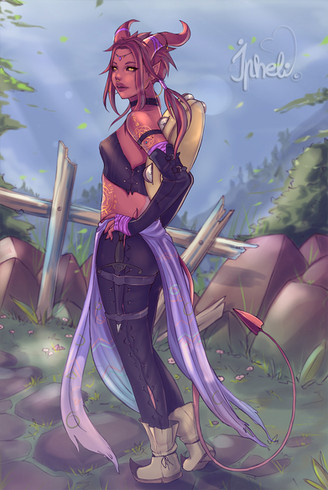 Hey !I'm happy to share this artwork I made with the new design of my OC Raeyna !