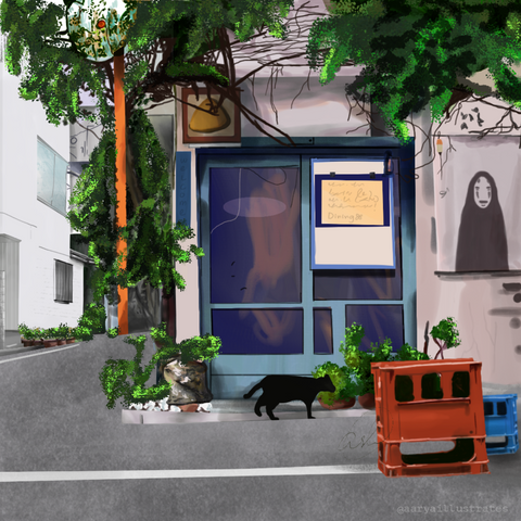 This was another cafe I painted that went out of business TTIt was an art gallery and they had the coolest work on display (from hand-painted pop art to motion graphics text. Iām not happy at all with how this turned out, the shadows are wonky and everything just looks off. But I like remembering my time studying here. ^^