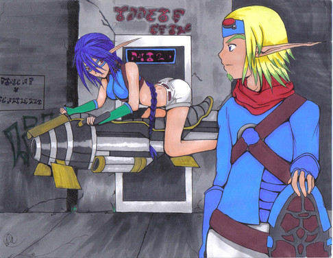 bah thank you <3 you did great on the coloring here too; better than mine xD and her hair! Ive drawn out poses for my char and finally settled down on one; now i just gotta ink him and i'll send it to you right away when i finish ^^ Thank you so much and the advertisement too <3