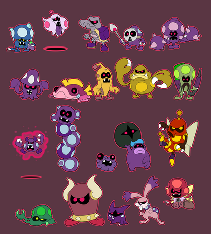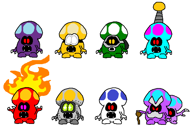 All of the variants of the Shroobs, main antagonists of Mario & Luigi: Partners in Time.Art © Ruption Shine