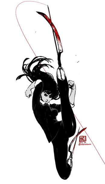Maki from Jujutsu Kaisen it's just a badass girl. (If you think the pose is not posible check the refence here )