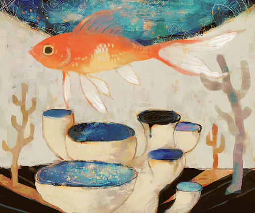 Man I think the fish are great, especially how you give the impression of scales with the flecks of different colors. Β Β I'm curious do you draw straight from what strikes your imagination and go for it or do you reference images before you begin or a combo?