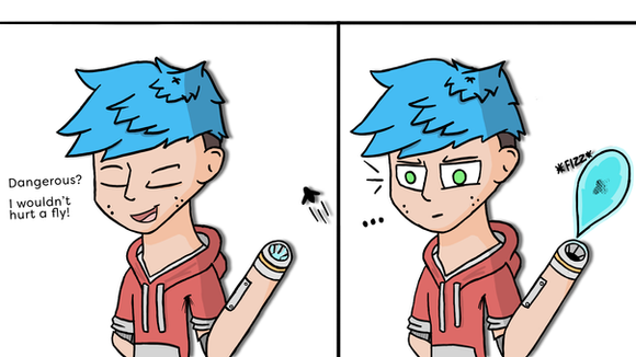 #arm #armcannon #blowing #blue #cannon #cybernetics #cyborg #energy #gay #hair #hoodie #metal #robotoc #smoke #teen #xander