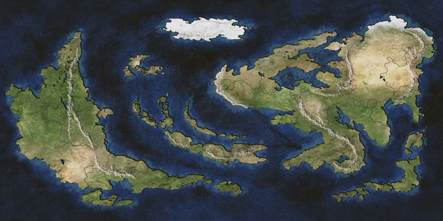Part of an ongoing process of studying how to make stunning fictional maps with a more realistic creation process (using plate tectonics, defining climates and so on), which can then be ported to game engines to be used in videogames. This world took a lot of time to make due to having to setup everything from a blank canvas then apply several methods from different tutorials i found in the Cartographers Guild apart of other videotutorials and guides found online (i personally recommend checking Artifexian's channel in youtube BTW).Still, the outcome isnt really good, i still need to find a proper balance in how to mix cloud patterns and handpainted elevation to make more realistic mountains and terrain differences. not to mention the issue of having to manage different color gradients to be able to paint the biomes (no, just putting a gradient mask where everything at certain latitudes is X color wont do, unless you manually paint some parts and even then it makes everything more burdensome).