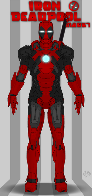 I like this. It's so crazy it bends around the other side to being awesome. And considering how slim the Suitcase Armor is compared to the other Iron Man armors, I think it wouldn't be too impeding for Deadpool's movements. Plus, it doesn't have weapons other than the palm repulsors, so he still has a good excuse to use his dual katana. All in all, I like this a lot.