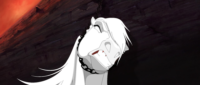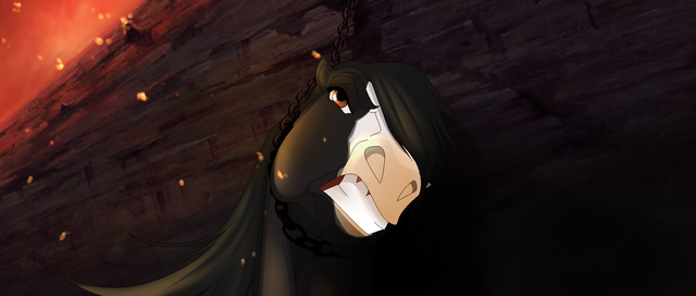 "almost there..almost there!" his mind shouted encouraging him to run even faster, as he was inches away from the gate as tight grip grabbed his neck and was pulled back making him fall backwards. Cain thrashed around and scream in agony as he was so close for freedom. The chain burned through his coat he screamed once more and fought back.