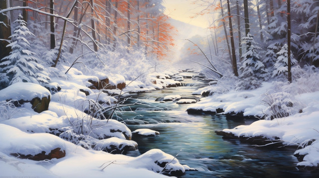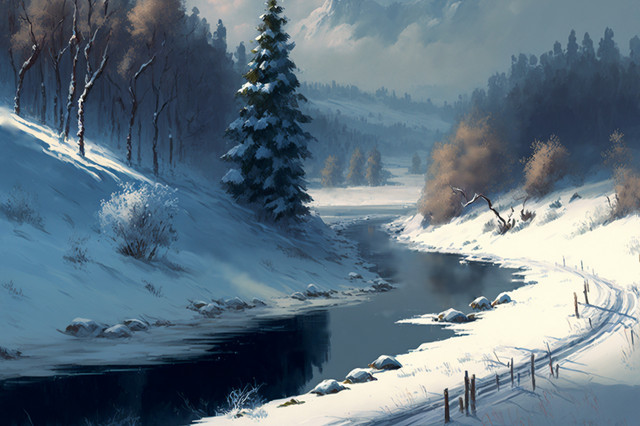 #forest #landscape #river #snow #snowylandscape #stablediffusion
