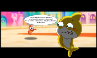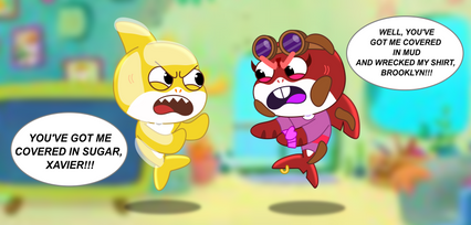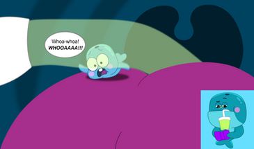 So Xavier discovers the Nom's bathroom and he finds a shower. He gets interested that he starts to use the shower. However, when Nibble Nom tries to look for Xavier to continue playing golf with him. Xavier actually forgets to lock the door, and Nibble Nom catches Xavier in the shower. Those two red dots on Xavier's butt are mosquito bites.Date Made: June 7, 2021