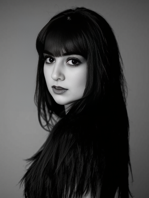 I just have one suggestion(it's still perfect), she has beautiful eyes and i think they are light colored, maybe u can do a portrait variation where the eyes have color but the rest is still in monotone.