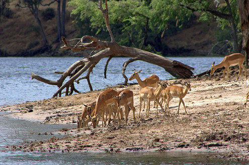 Impalas are medium-sized antelopes that roam the savanna and light woodlands of eastern and southern Africa. In the rainy season, when food is plentiful, they may gather in large herds of several hundred animals to browse on grasses and herbs, bushes, shrubs, and shoots. Herds offer protection from predators, such as lions. An alert impala will bark out an alarm that puts the entire herd to flight—and a fleeing impala is no easy prey.Info source URL: www.nationalgeographic.com/ani…