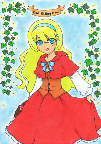 Little Red Riding Hood for school assignment. It was my first time trying out watercolors (without it being a sketch). I colored the character with markers, though. Only because the ink started to bleed when touching water so yeah.