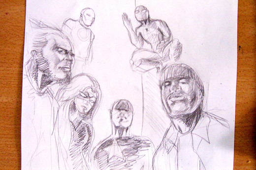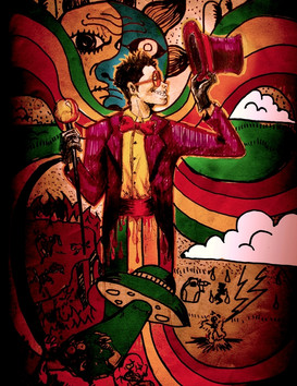The characters are in black watercolor and all the coloring are done in photoshop