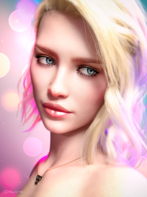 Her pose and expression is just so sweet! I love the soft golden glow of her beautiful wings and halo. She's so lovely. You've done an amazing job with this portrait!