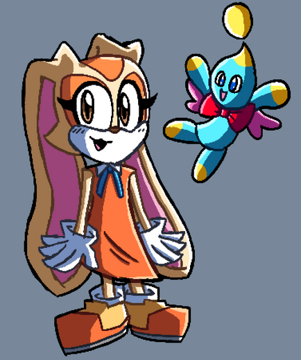 A design for an older Cream. I dunno how an older Cheese would look so I just made him slightly bigger. Some people say he'd probably be a hero chao as he ages, and I can see that, but eh.Related content