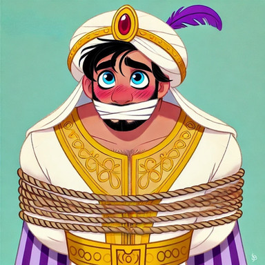 Oh my gosh this is amazing! The chains, the gag, the hairy muscular half naked body. it's so flawless! You did an amazing job drawing Aladdin like this! I'm sure wolffan will be more than happy to find this lovely piece!