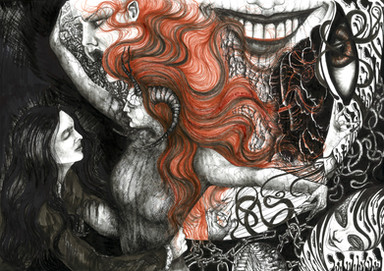 This is gorgeous! I really love the style and all those shapes created by the various strands/webbing/tendrils. Really beautifully done.