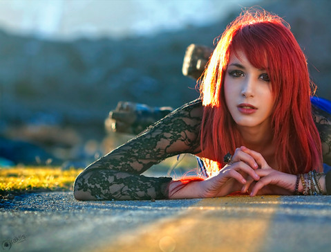 Unreal, your model is so gorgeous that she almost looks like a doll. I love the makeup in this photo, along with the bright red of her hair. I also really like the chaos behind her, it contrasts very well with her. Great work!