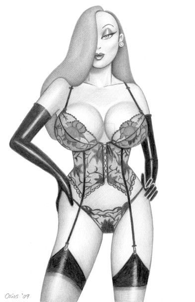Pencil drawing of toon Jessica Rabbit in a sexy striptease.Paypal Donation Link
