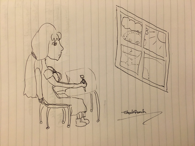 A quick gif I made for my class of tomorrow. It's supposed to be an image that is probably well known to most people (a simple ride on the bus) but holds a special meaning to me personally. In this case this is the bus I always used to take when I was in high school, in fact the only bus that goes from my home town to the city. There'd be plenty of moments I could sit with an entirely empty bus, when I'd like to sit in the back to have a moment for myself. I took the pictures when I was back home from college this weekend and added the rest later. My phone made an automatically generated animation out of it, which I thought looked cool, so I tried to recreate that animation through Photoshop. It's a bit shocky even though I tried to straighten the photos out so they alligned well with each other, but this is only an attempt, and I do like how it came out despite that. I don't know if we get the chance to work on this project much further or if it was just for the sake of brainstorming, but if there is time I may work on it further. It's been a long time since I tried to make some sort of animation or gif, but I'd like to pick it back up to finally learn more about it.On a side note, I found out my college has a pretty decent scanner! I also scanned some of my drawings that I haven't been able to upload yet at home. I finally got my laptop back since yesterday. This week, when I have the time, I'll go through the raffle entries and I hope I can pick a winner this weekend. I hope that now I have my technology back I can continue to upload new things, although it may be less often due to my school schedule. (However, I could use Deviantart as a way to show my homework without having to bring my own laptop, that's kind of why I'm uploading this now LOL)