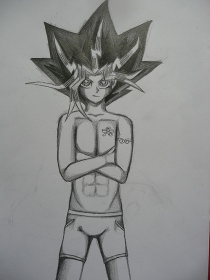 I drew him him a bit more muscular than I intended to, because my friends kept asking me if he eats *-* so I decided to draw a Yami no Yuugi-Atemu mix. I always picture Atemu more muscular than Yami no Yuugi.