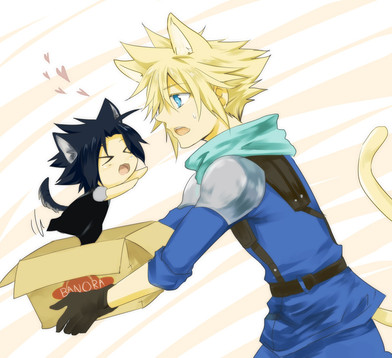 What a tiny little Cloud!Β I wonder if this is what prompts Sephiroth to get a cat.Β X3