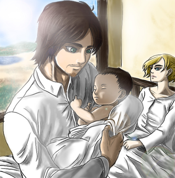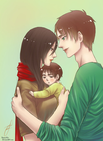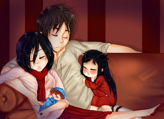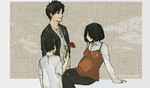 Awe! Is she pregnant? That's so adorable!! I love it!! I personally see mikasa only wanting eren in her life but I absolutely adore this picture and it really brings huge feels and such sweet emotion to the picture!!! Amazing job!!! 😀👍