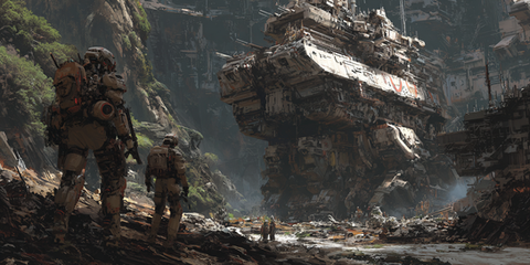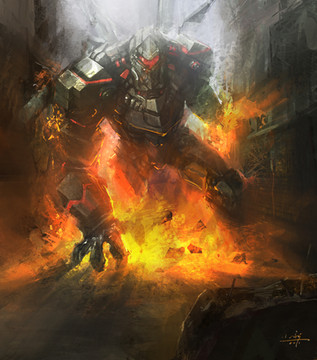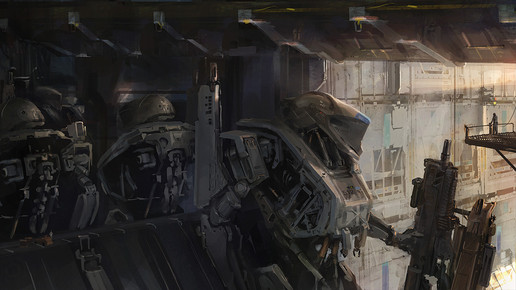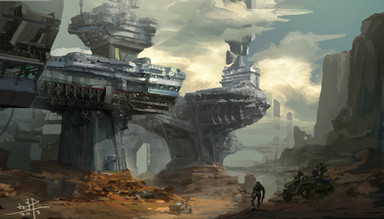 I want to use it as inspiration someday... wow! I love everything from the guy in power armor in the foreground to the techs to the mech to the mammoth vehicle. Keep up the great work!