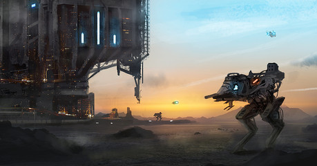 #droid #fortress #robot #rocks #scifi #soldier #tower #water #battlerobot #alienplanet #sciencefiction #scififantasy