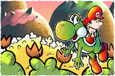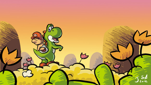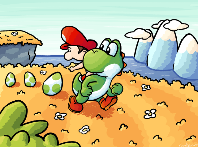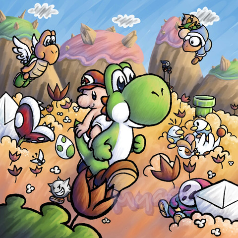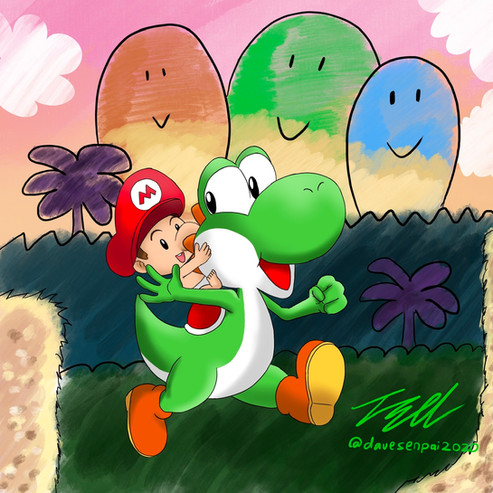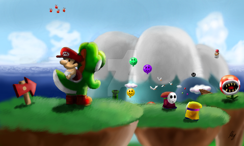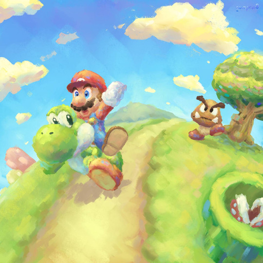 OMG so adorable! This piece is love! The clouds, the grass and awh baby Mario!