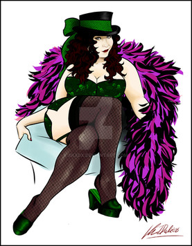 I tried using regular colors and it looked so silly. Like someone had stuck Amy in a tanning booth and it actually worked instead of turning her into a human raspberry. LOL Something else that was hilarious was the reference photo I was using was of Lynda Carter, in the 80's, in a burlesque outfit. So she had on those SUPER dark shiny tights that shimmer. So I got in my human photocopier mode and started painting up her legs with this FANTFUCKINTASTIC shine right down the leg. Not even thinking about it. I stepped back and went " wtf is that?" and THEN realized what I was doing. LOL I kept a little of the shine cause it looked good but nooooo shimmer tights for Amy, ....so sad.