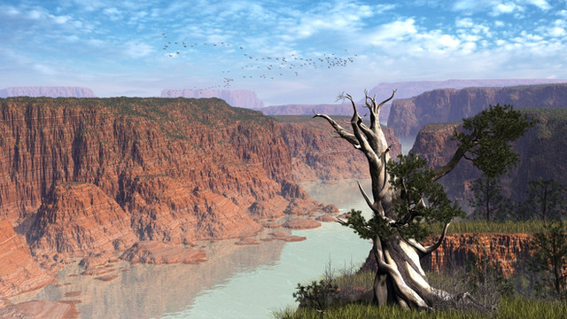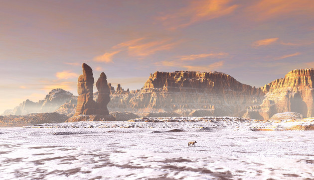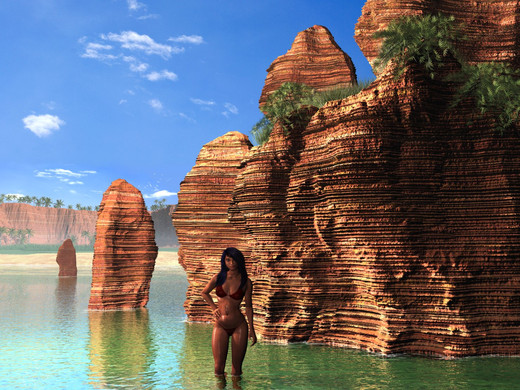 Strange rock formations in the middle of the desert.Wings3d and Bryce