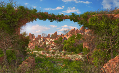 The rock-arch and the other one; multiple duplicated and horizontally as well vertically rotated.